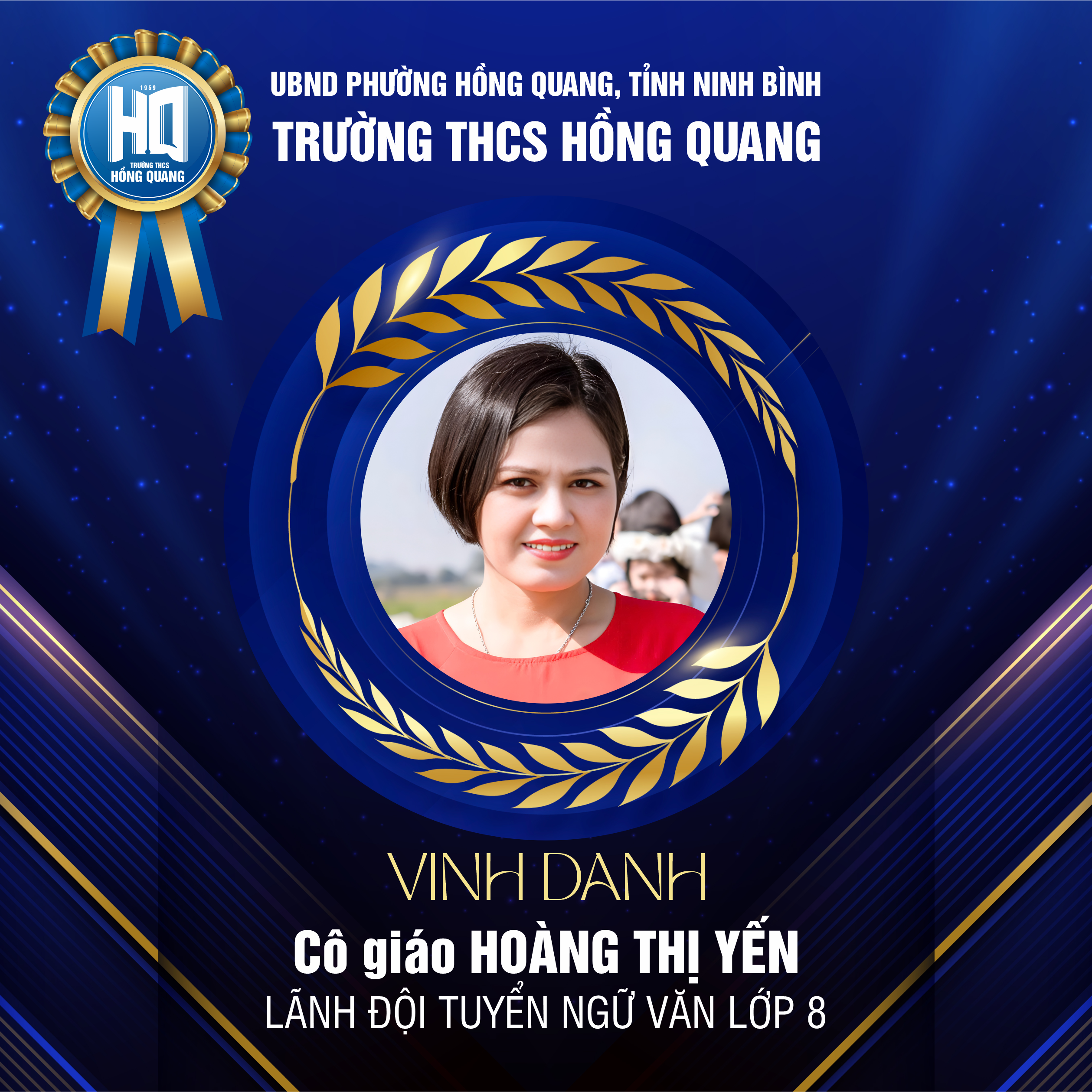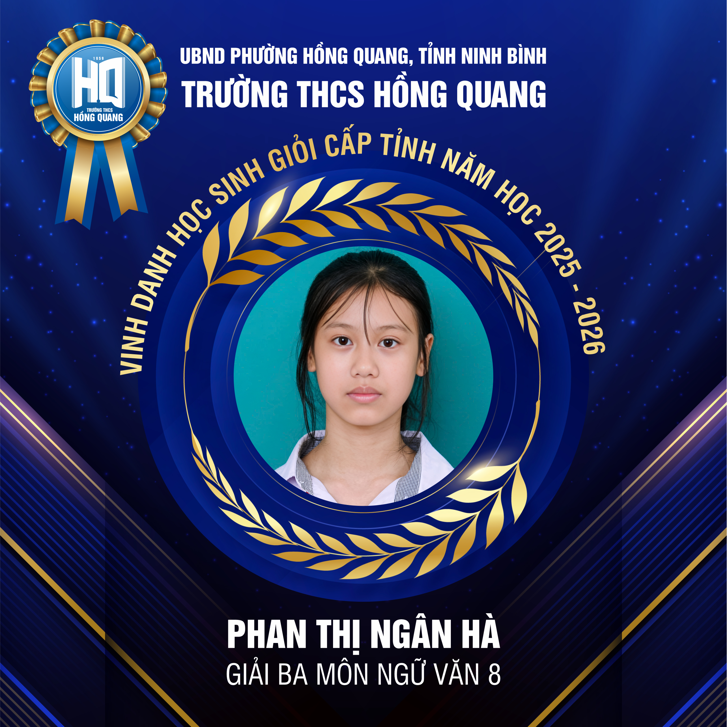 - Em Phan Thị Ngân Hà, học sinh lớp 8D, cô giáo Hoàng Thị Yến lãnh đội, đạt giải Ba môn Ngữ văn lớp 8.