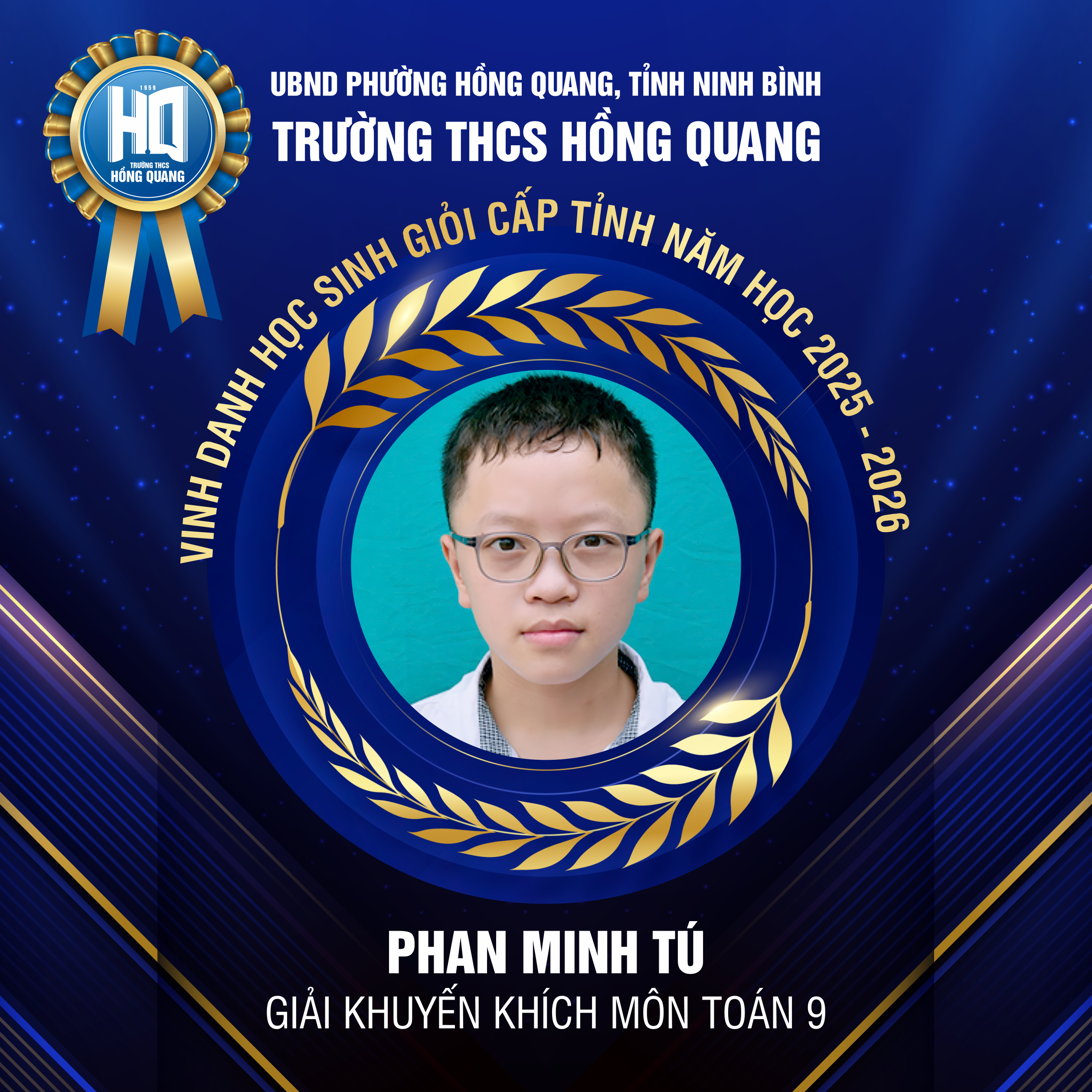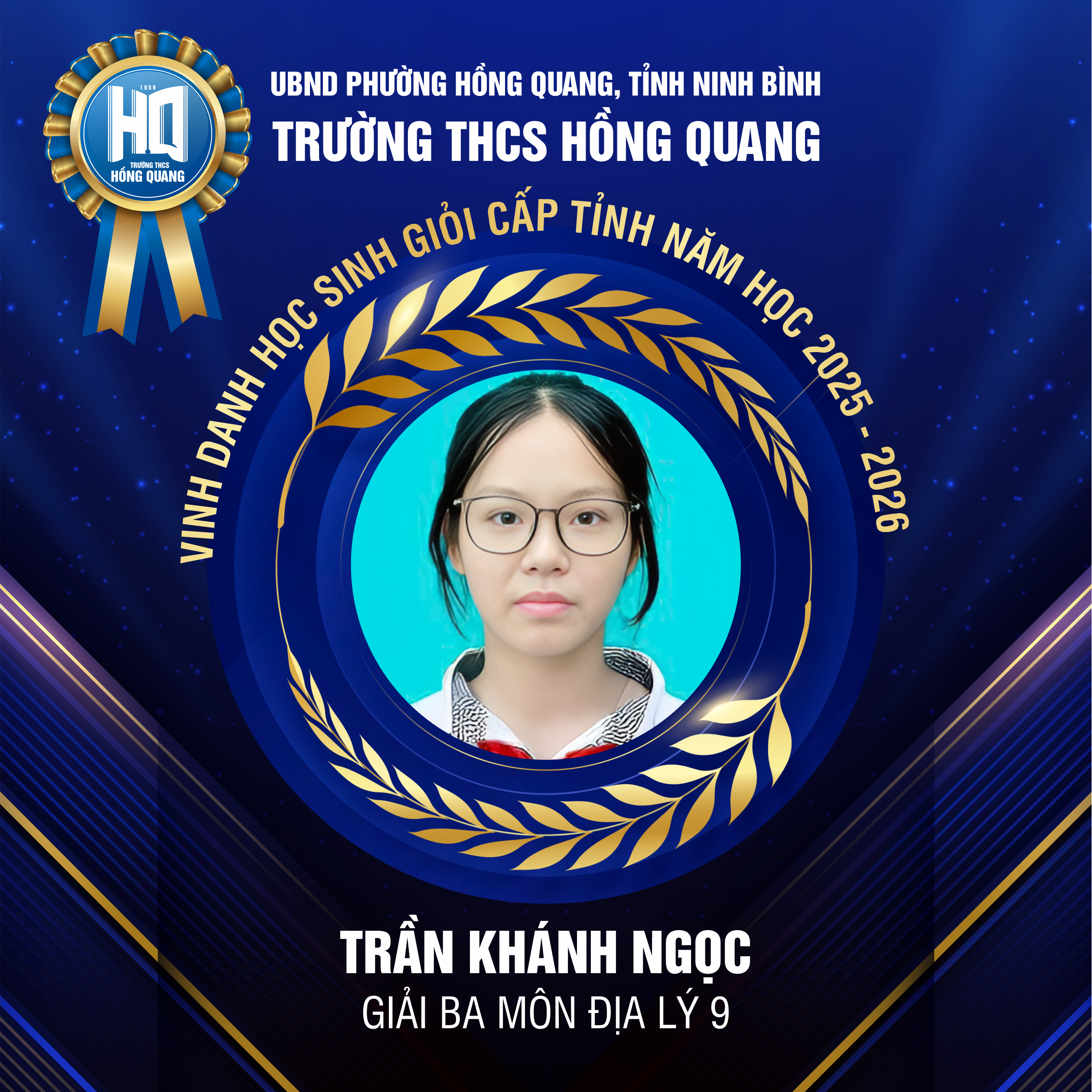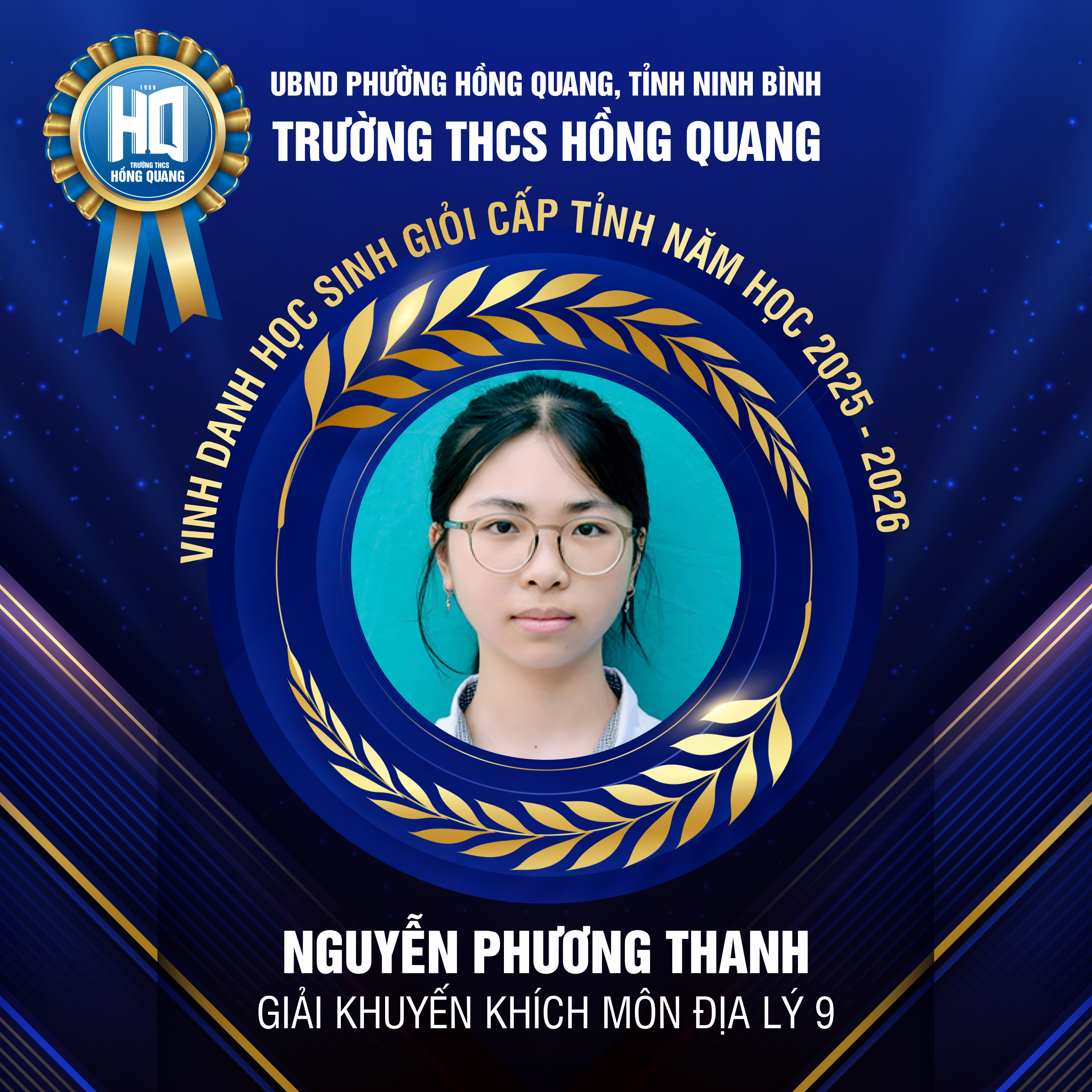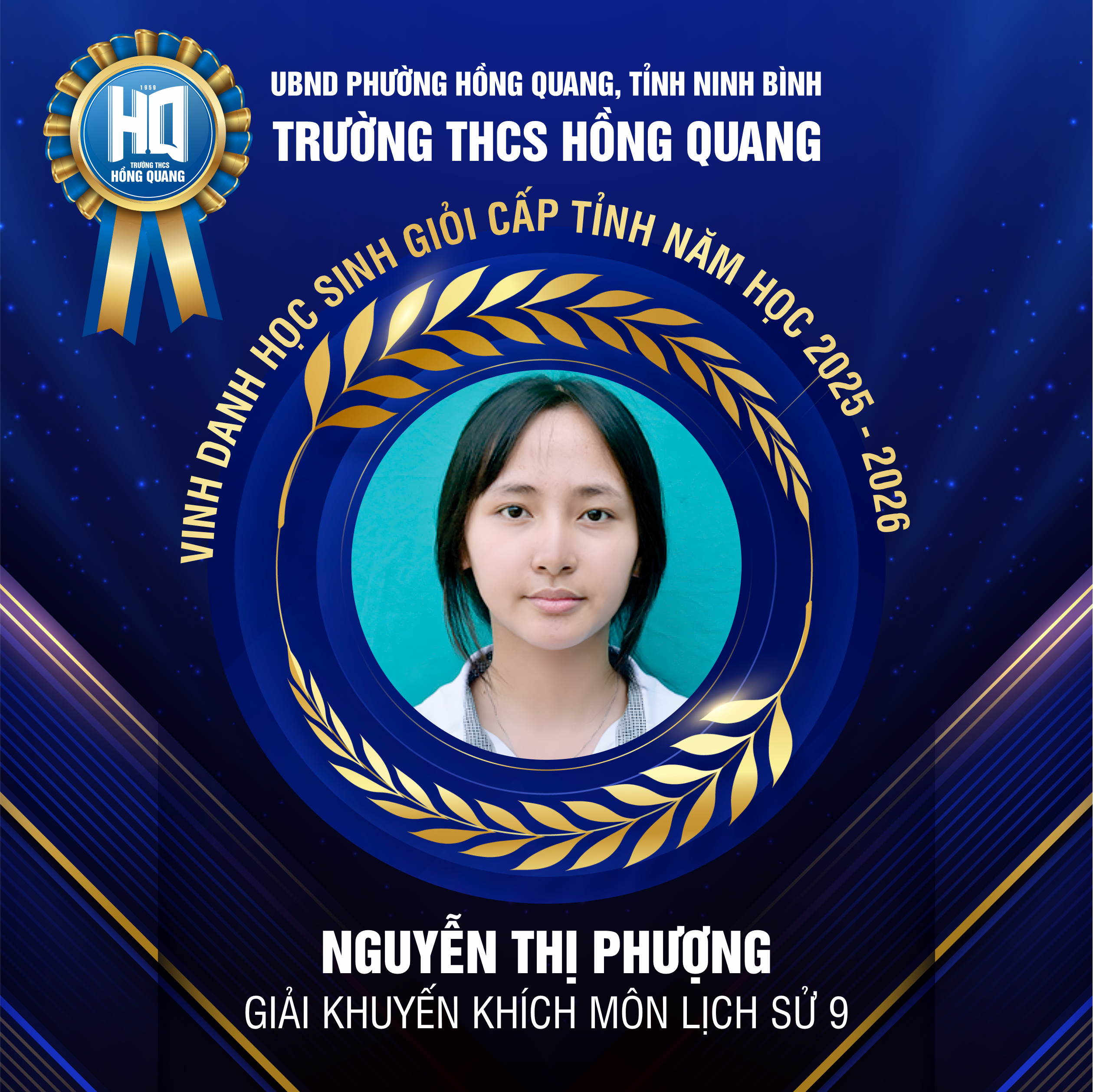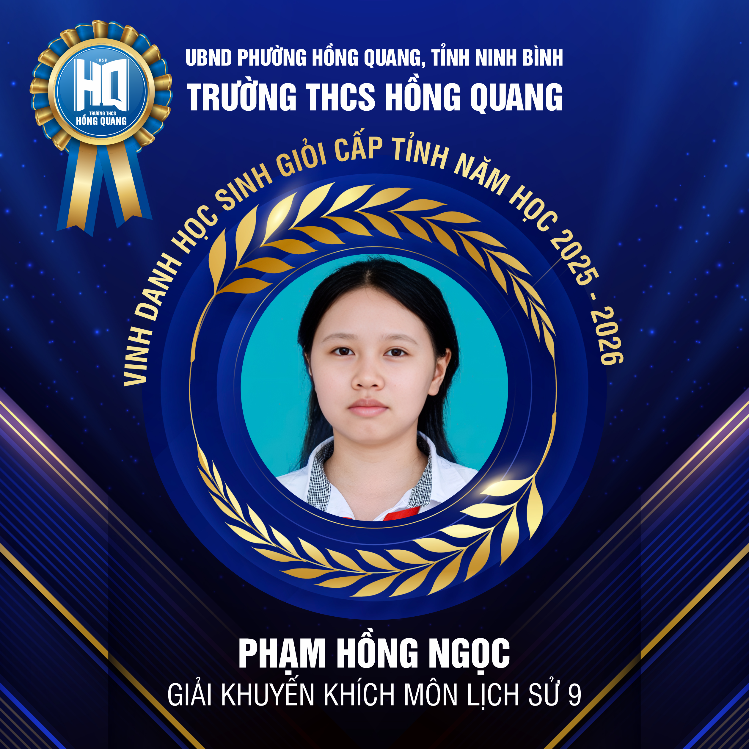 Trong không khí thi đua sôi nổi của năm học đầu tiên sau sáp nhập, thực hiện chính quyền địa phương hai cấp, thầy và trò trường THCS Hồng Quang vô cùng phấn khởi khi nhận được danh sách học sinh đạt giải học sinh Giỏi cấp tỉnh năm học 2025-2026 của Sở GD&ĐT tỉnh Ninh Bình. Đó làcủa các em là niềm vinh dự của các em học sinh, niềm tự hào của các thầy cô, nhà trường và gia đình các em. Nhà trường xin biểu dương và chúc mừng các em, đồng thời ghi nhận sự tận tuỵ, tâm huyết của các cô giáo đã trực tiếp bồi dưỡng, đồng hành cùng các em học sinh trong chặng đường vừa qua .