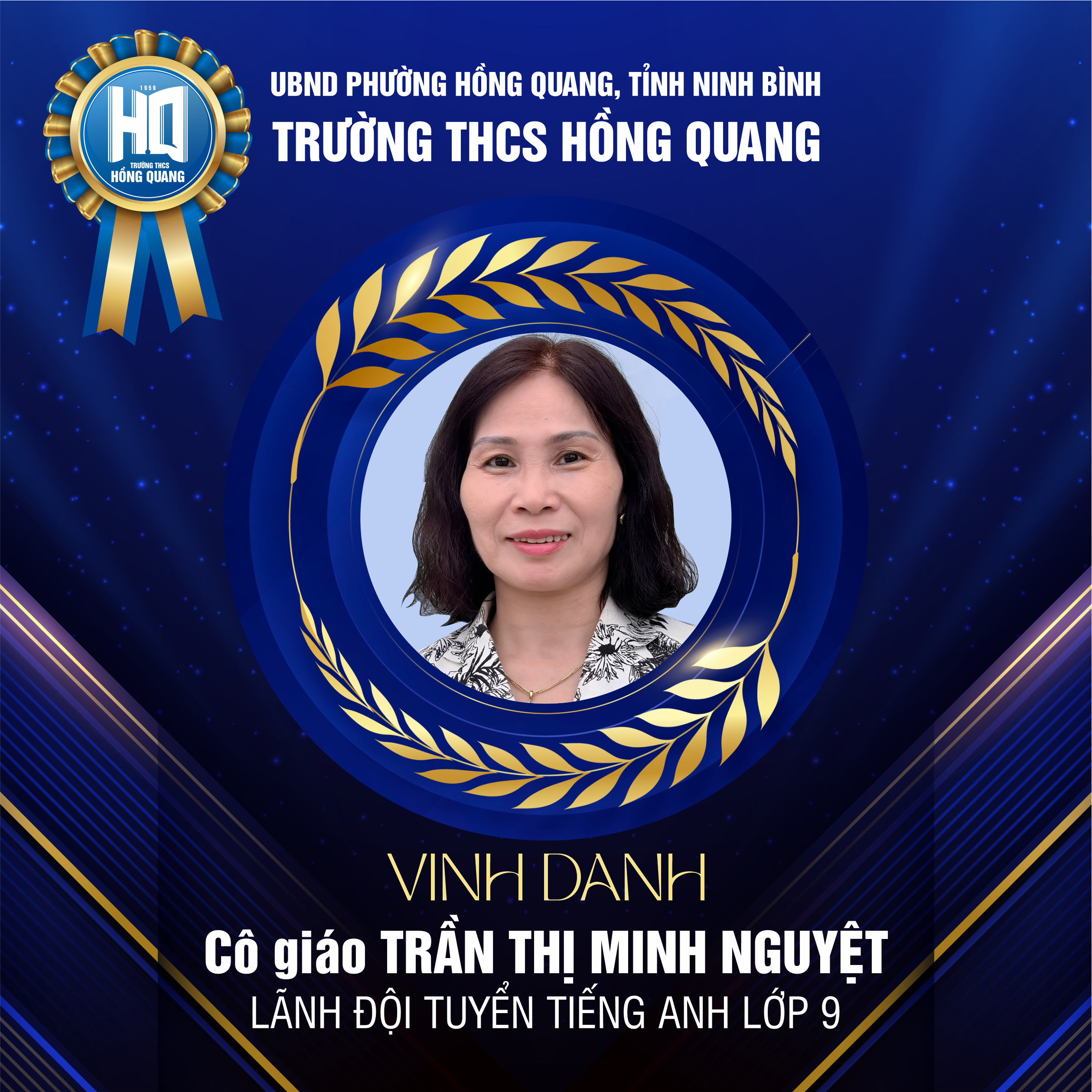 - Em Nguyễn Bảo Hiên, học sinh lớp 9D, cô giáo Trần Thị Minh Nguyệt lãnh đội, đạt giải Ba môn Tiếng Anh lớp 9.