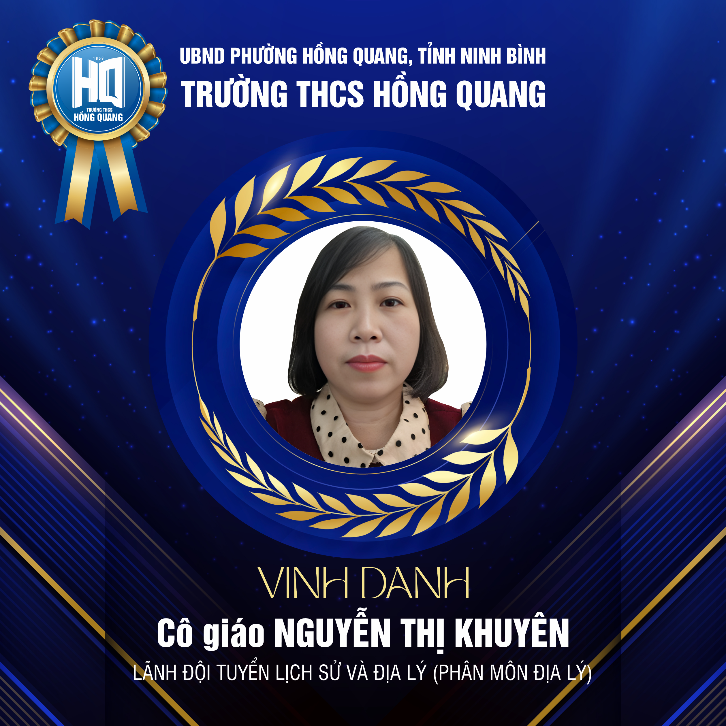 - Em Trần Khánh Ngọc, học sinh lớp 9D, cô giáo Nguyễn Thị Khuyên lãnh đội, đạt giải Ba môn Lịch sử & Địa lí (Phân môn Địa lí).
