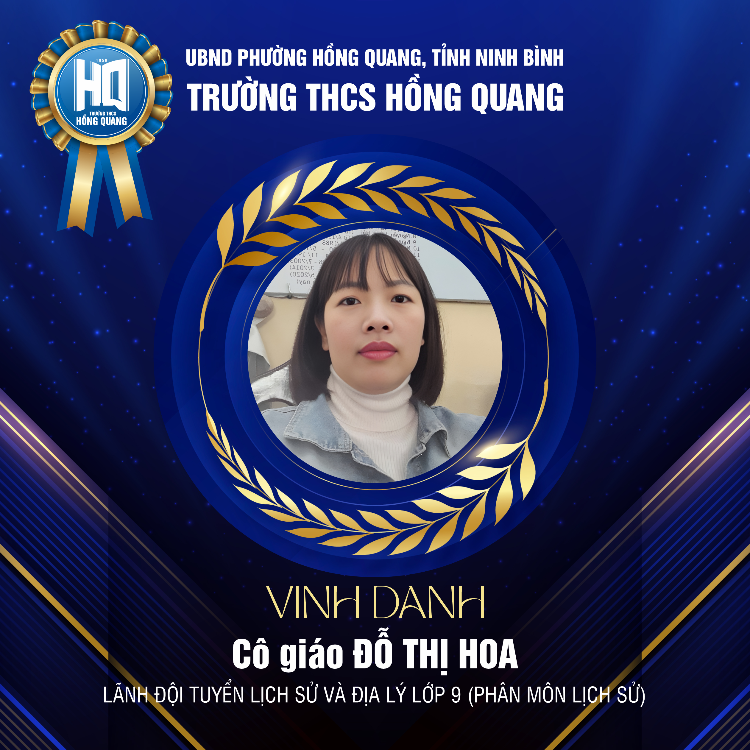 - Em Phạm Hồng Ngọc, học sinh lớp 9D, cô giáo Đỗ Thị Hoa lãnh đội, đạt giải Khuyến khích môn Lịch sử & Địa lí (Phân môn Lịch sử).
